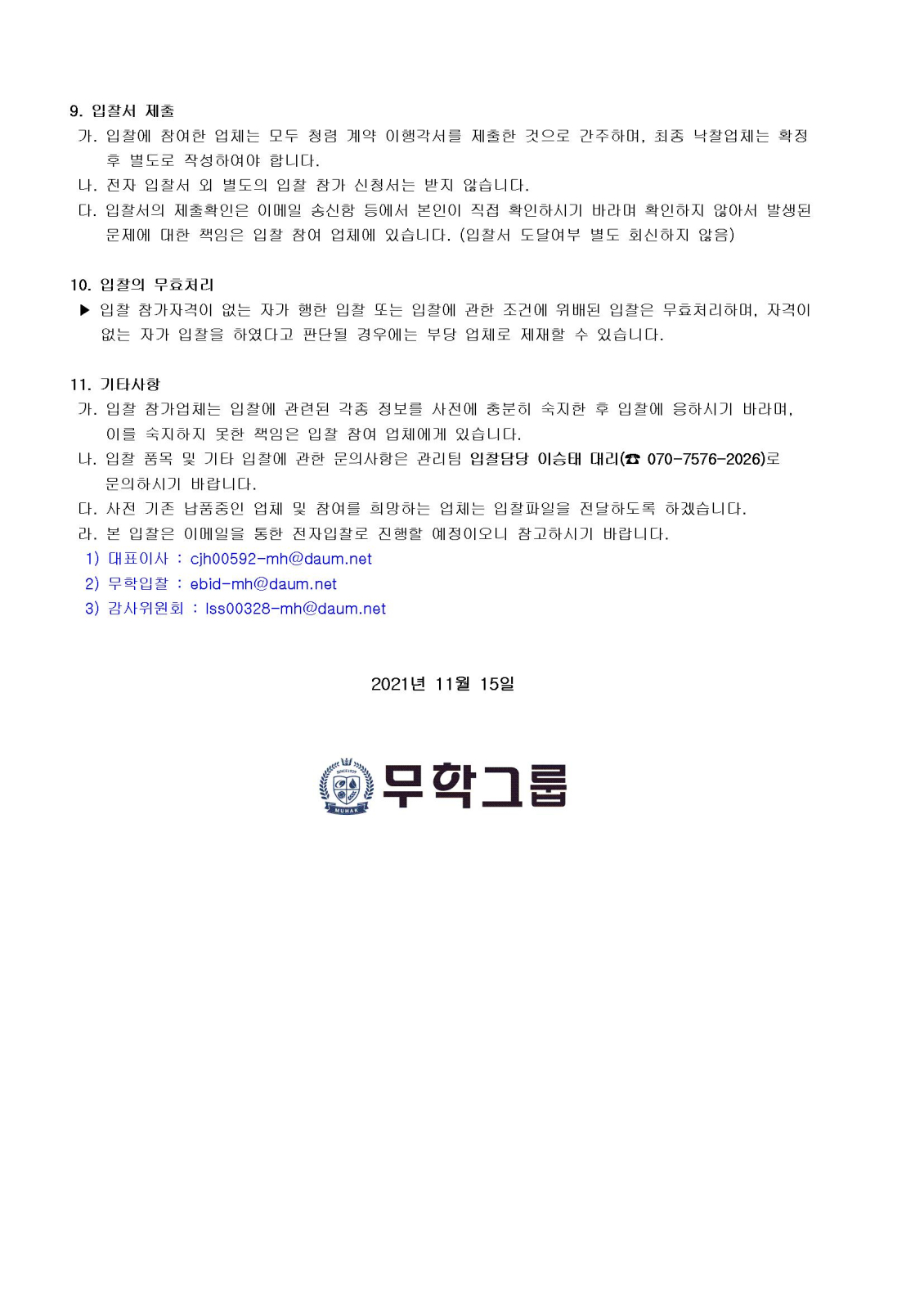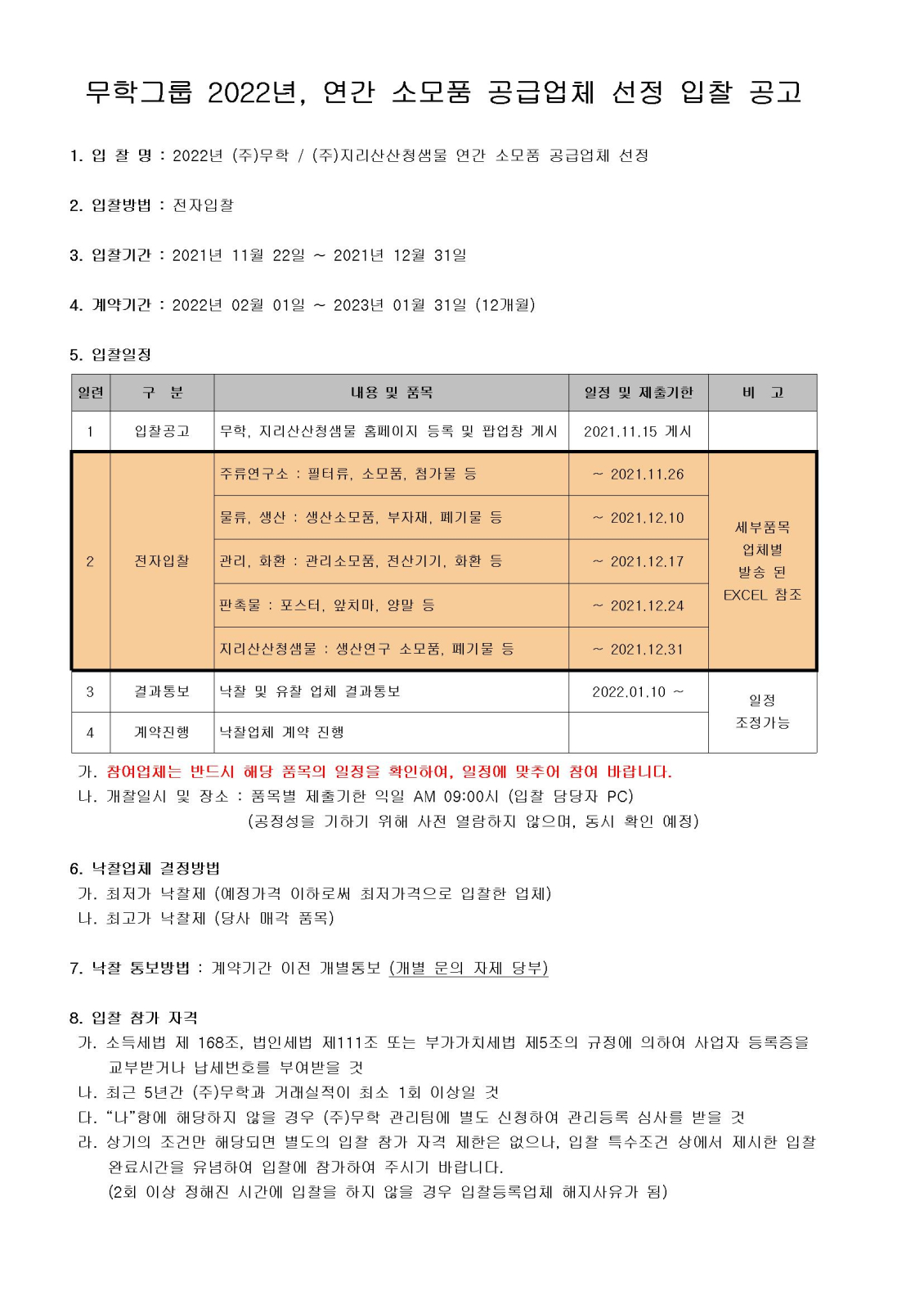 (주)무학 2022년 연간 소모품 공급업체 선정 입찰 공고