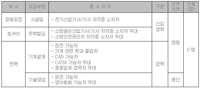 ※ 공통사항 : 국가 보훈대상자 우대 (취업지원대상자 증명서 제출), 남자는 군필 및 면제자,