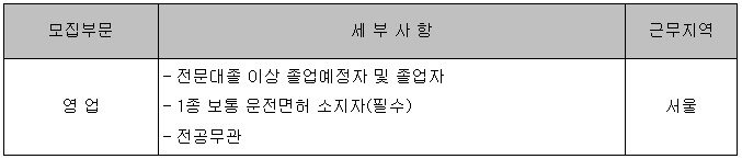 ※ 입사지원서 파일명은 ‘성명-부문’ (예시:홍길동-영업)으로 저장 후 메일첨부.