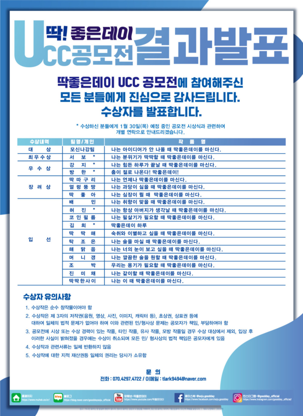 * 수상자분들께서는 수상자 유의사항 참고 부탁드립니다.