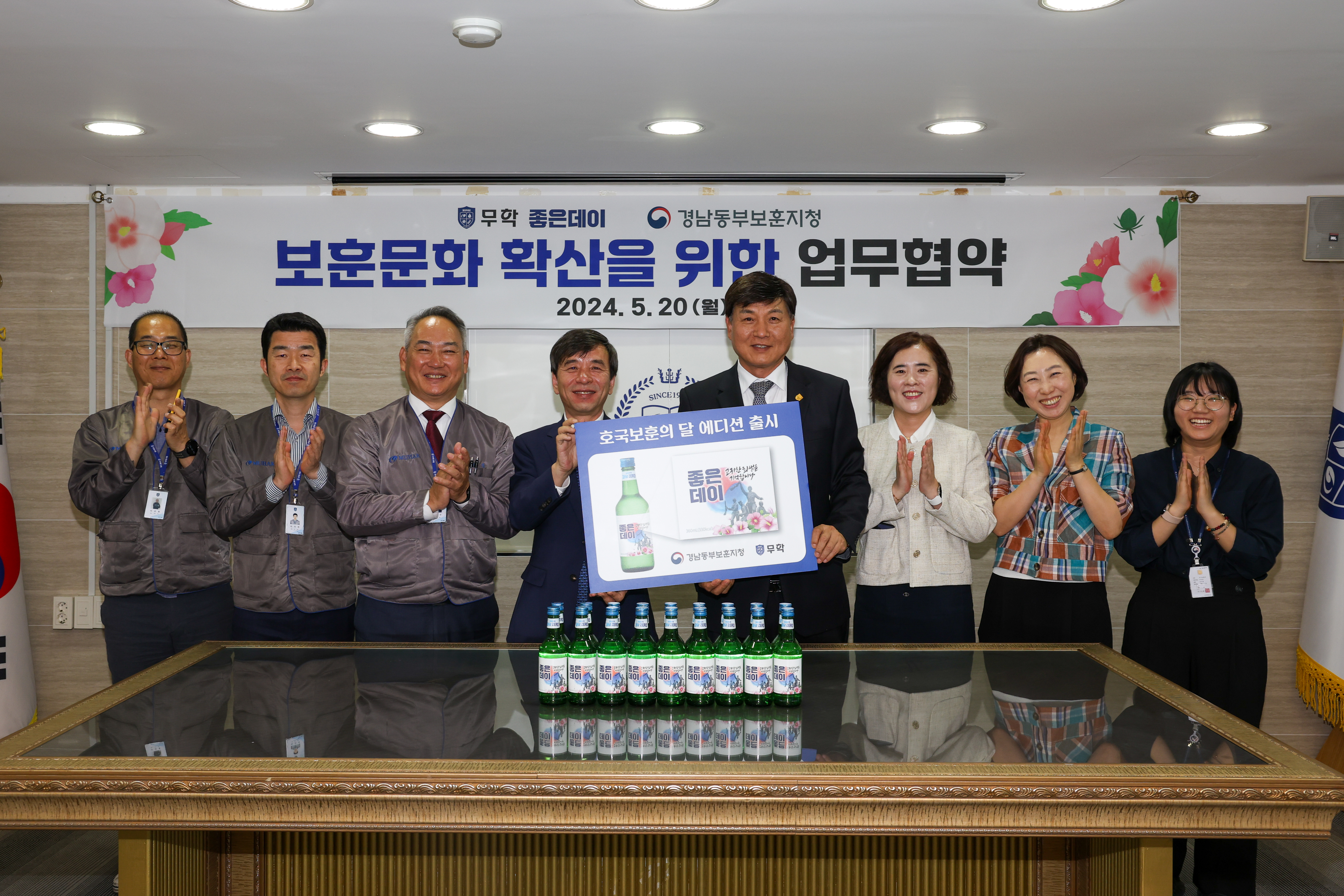 20일 창원시 마산회원구 무학 본사에서 열린 협약식에는 최재호 무학 회장과 조경철 경남동부보훈지청장이 참석해 협약을 진행했다. 협약에 따라 무학은 6월 호국보훈의 달을 기념해 ‘좋은데이 호국보훈의 달’ 한정판을 출시한다.