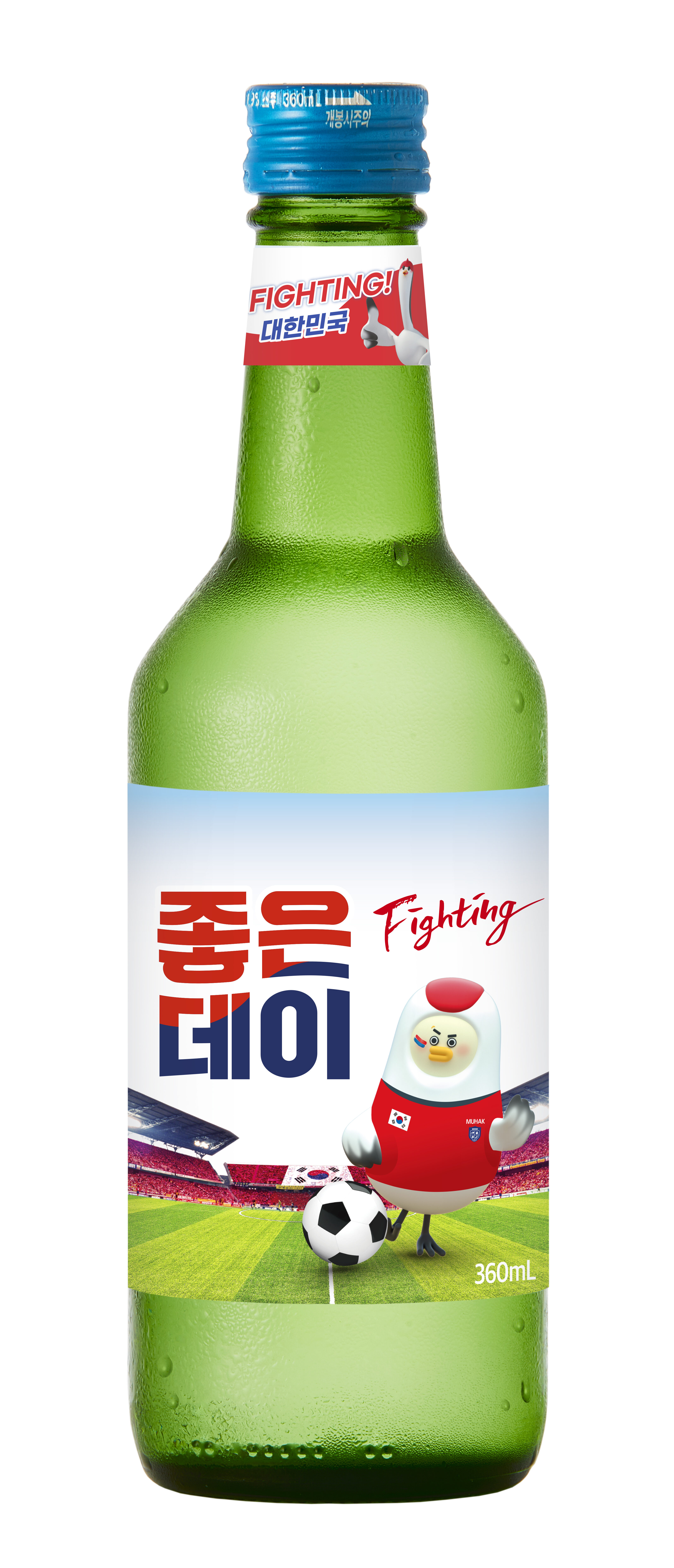 무학은 소주 ‘좋은데이’에 대한민국 축구팀을 응원하는 라벨을 부착한 한정판 500만 병을 출시한다.