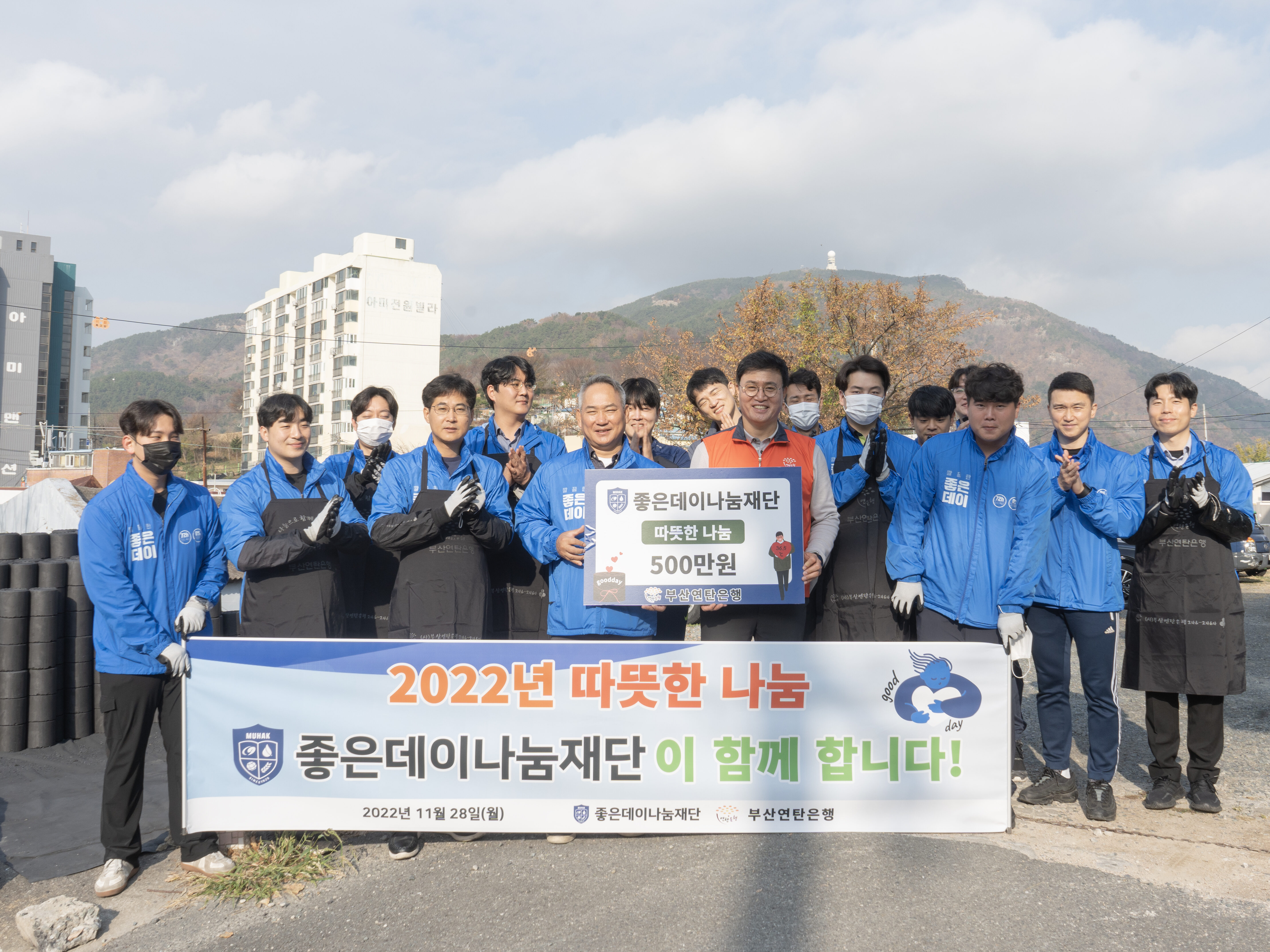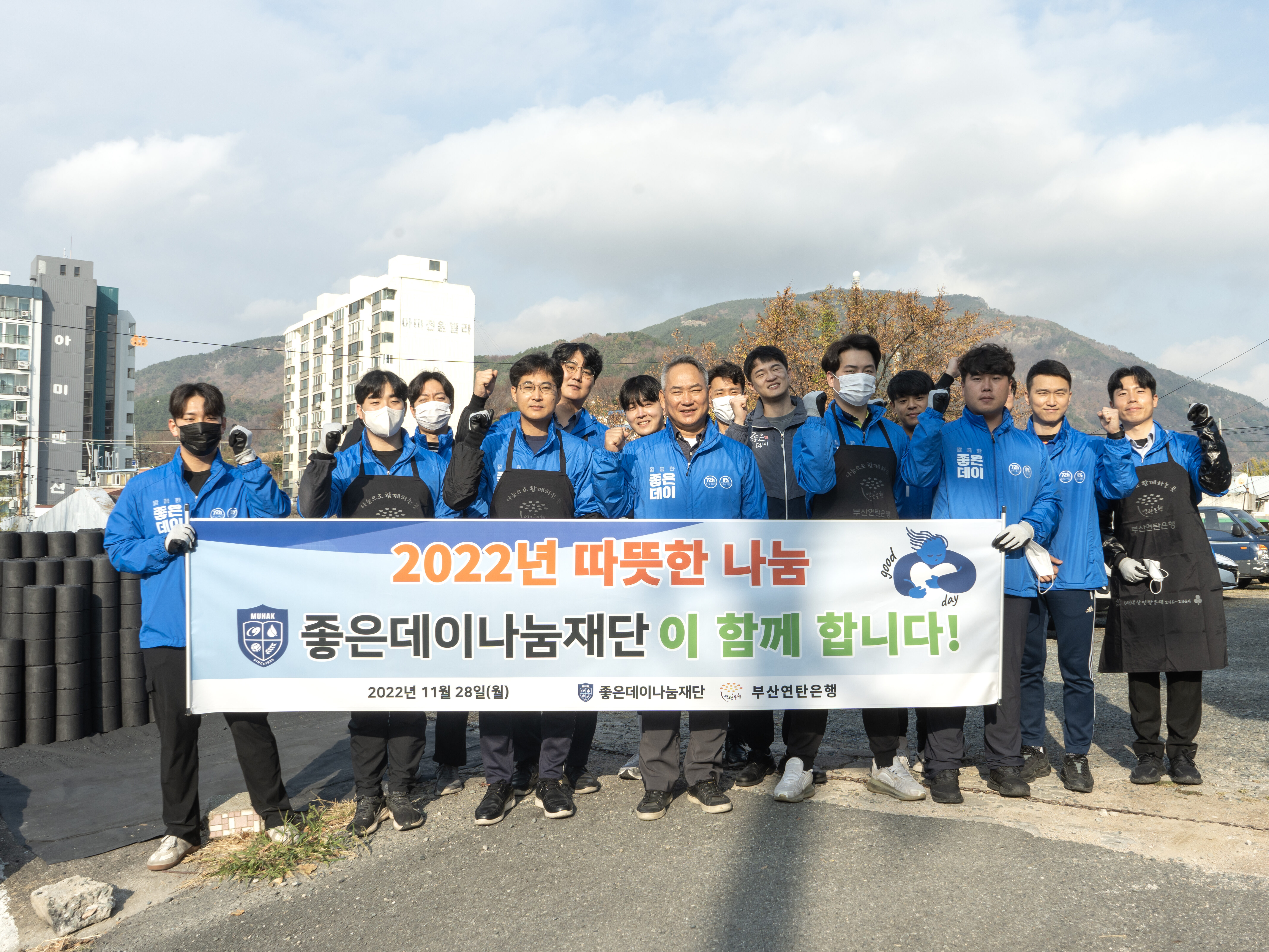 강정칠 부산연탄은행 대표는 연탄나눔에 앞서 무학 좋은데이 봉사단에게 “이렇게 오랜 시간 동안 꾸준히 관심을 가지고 매년 연탄 나눔에 참여해 줘 감사하다”라며 인사를 전했다.