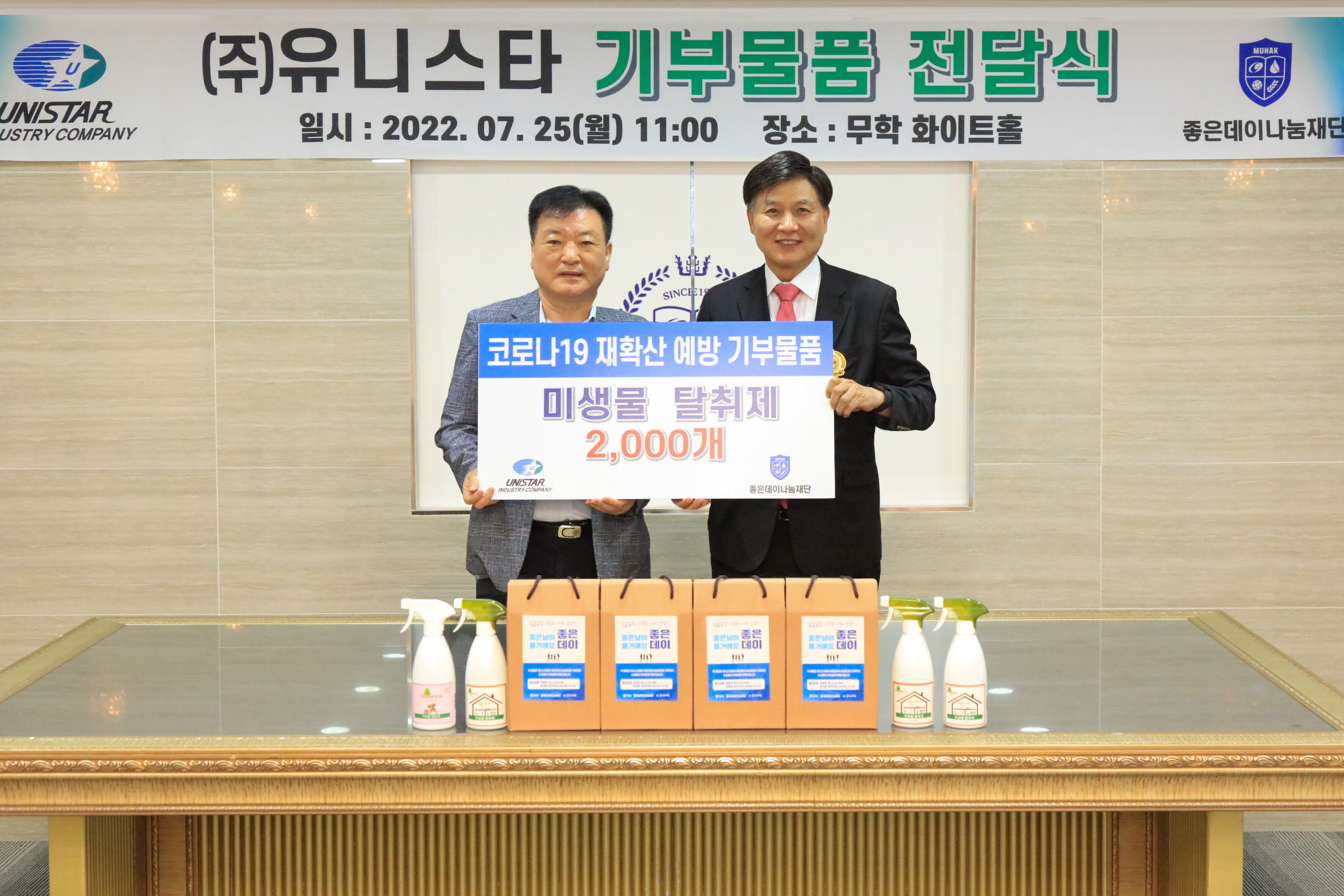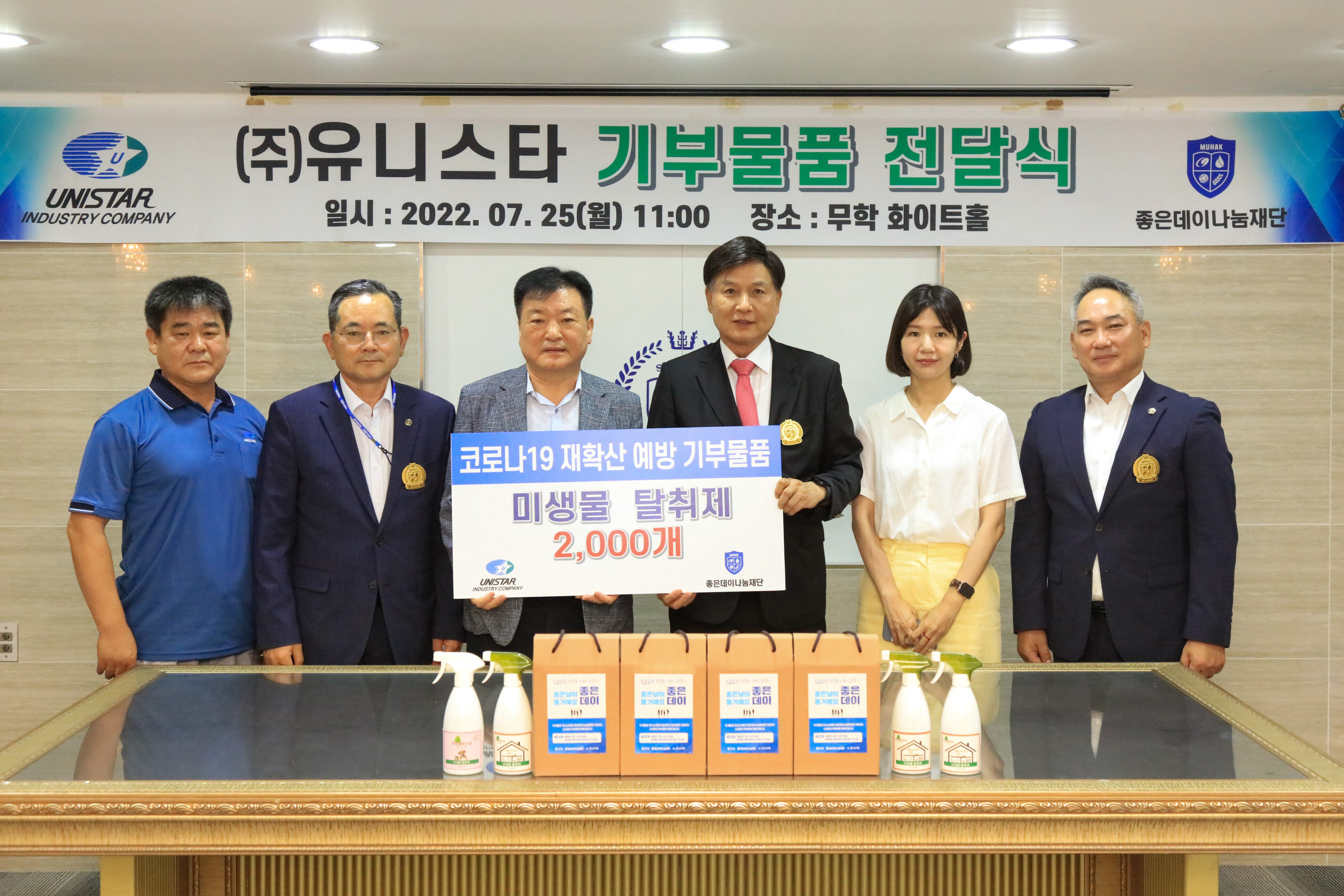 무학 좋은데이나눔재단, 유니스타 기부물품 전달식 진행