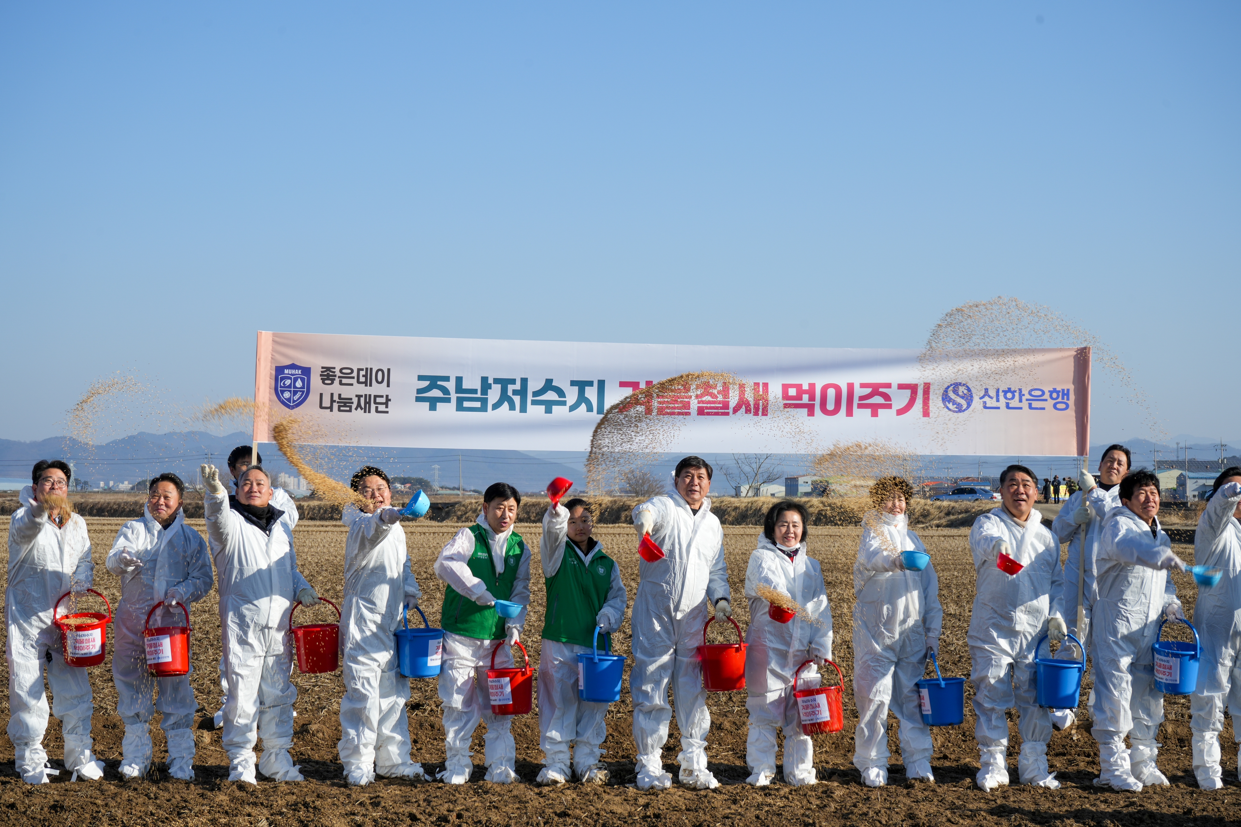 무학 좋은데이나눔재단(이사장 최재호)은 우리나라를 찾아 월동하는 철새를 돕기 위한 먹이주기 행사가 올해로 14년째 진행하며 환경보호 활동을 이어오고 있다.