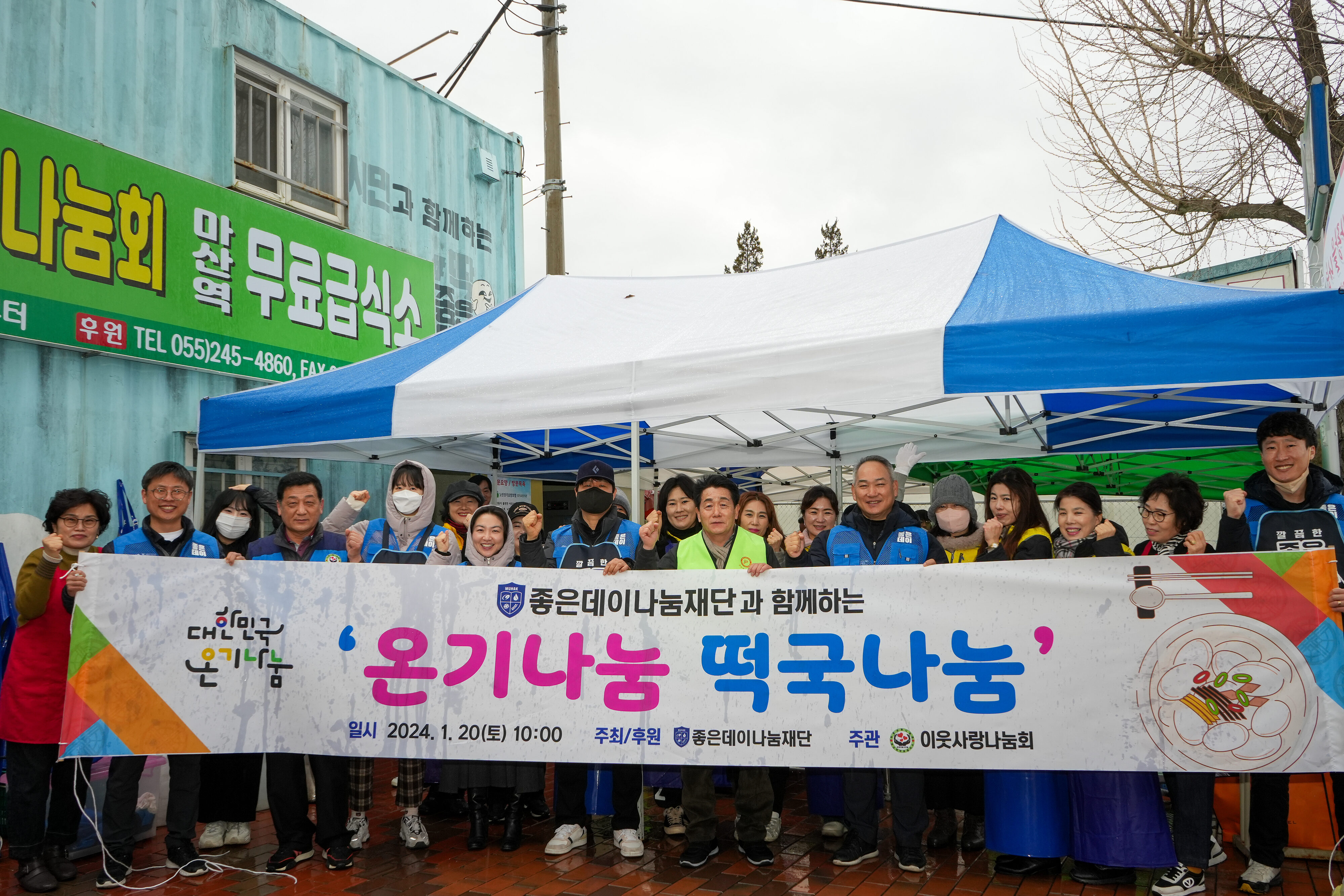 20일 무학 좋은데이나눔재단(이사장 최재호)은 창원시 마산역 앞 무료급식소에서 ‘2024 사랑의 떡국 나눔’ 행사를 펼쳤다.