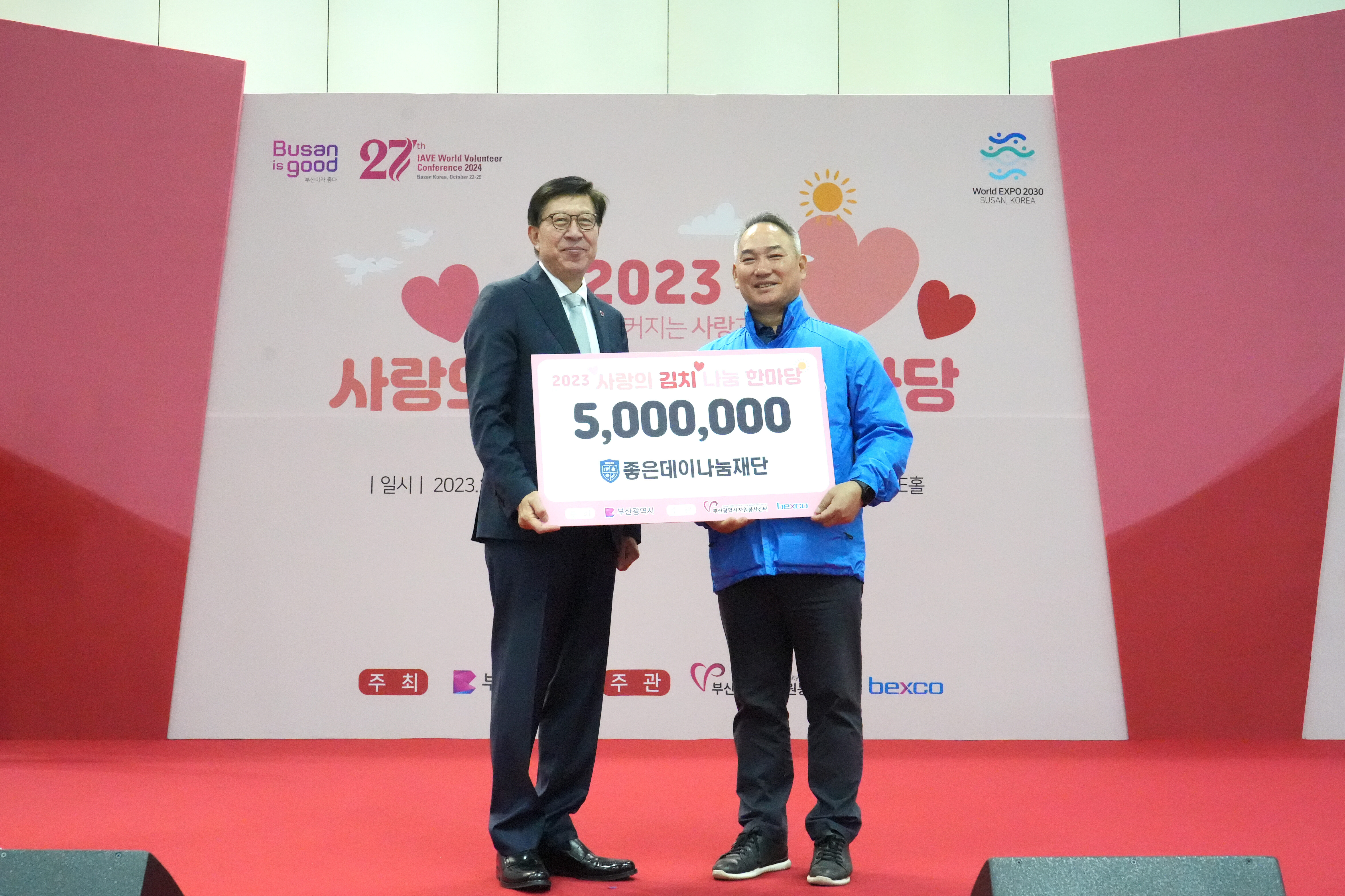 ‘2023 사랑의 김치나눔 한마당’은 지난 10일 부산시 벡스코 제2전시장에서 열렸으며, 무학 임직원 좋은데이 봉사단을 비롯한 32개 기업 및 단체 1,000여 명이 참여해 1만여 포기, 23t에 달하는 김치를 버무리고 포장하는 등 봉사활동을 펼쳤다.