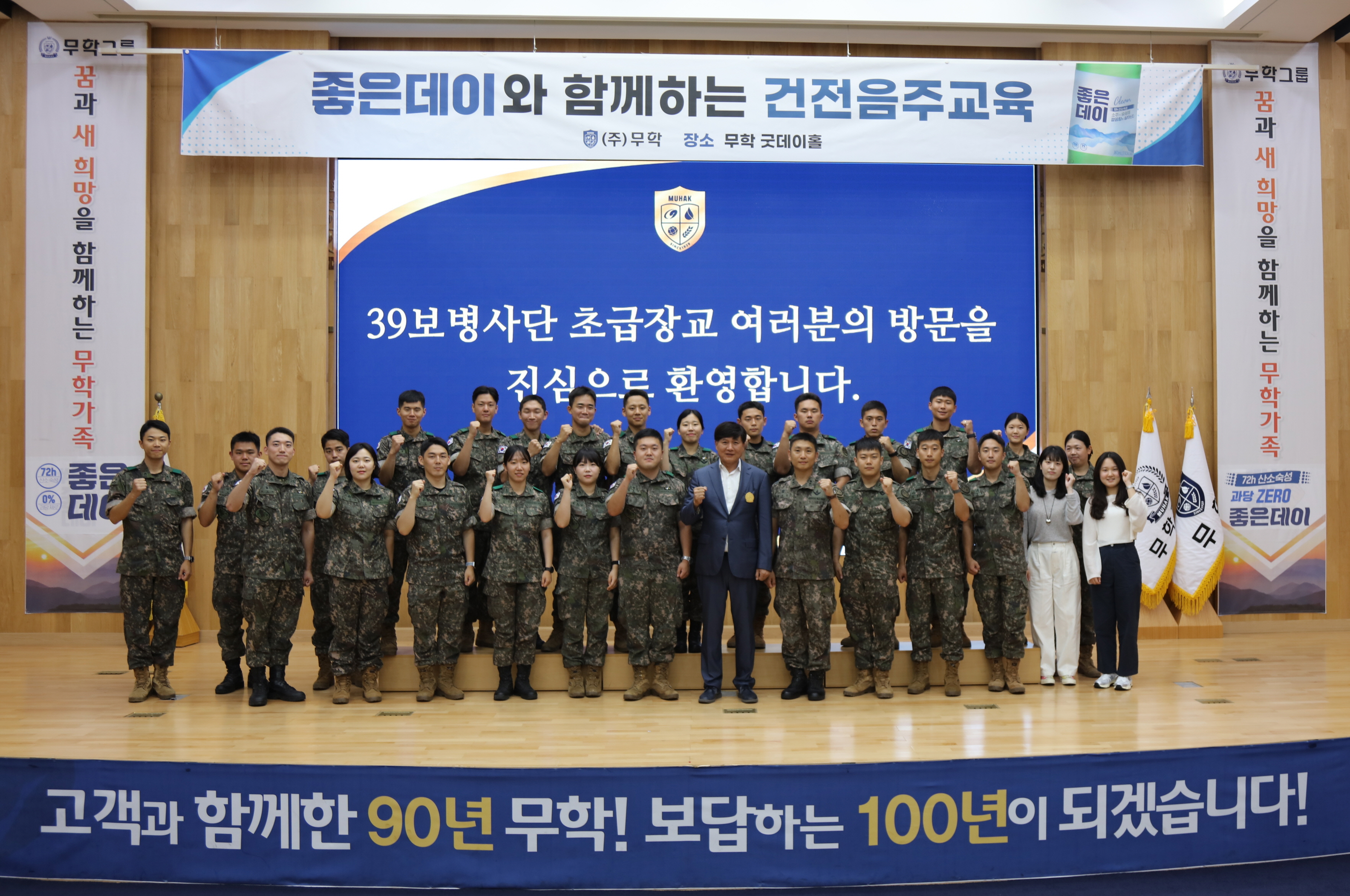 최재호 무학 회장은 “술은 무엇보다 올바른 음주 습관으로 함께한 사람들과 즐기는 것이 중요하다”며 “이번 교육이 존경받는 멋진 군인이 되는 데 도움이 되길 바란다”고 말했다.